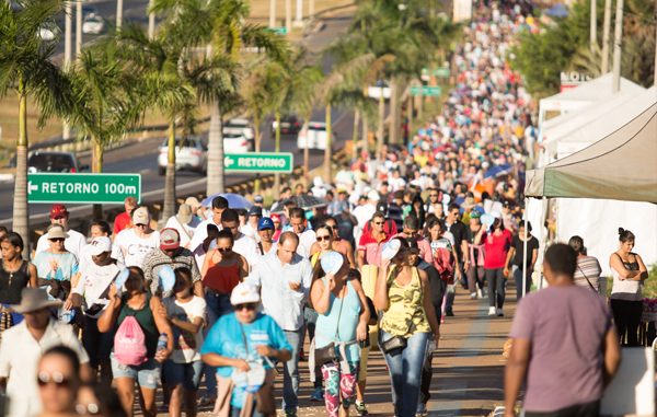 Ao longo da GO-060, entre Goiânia e Trindade, devotos caminham por um percurso de cerca de 17 km. Às margens da rodovia, estão 14 painéis duplos, divididos em sete estações, que representam a Via Sacra. As obras foram criadas em 1988 pelo artista plástico Omar Souto.